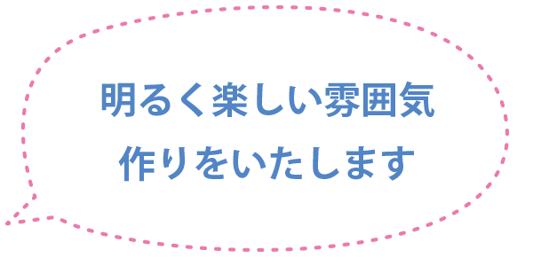 笑顔があふれる歯科医院では、私たちと患者様のお互いの気持ちが救われます。 また、歯の痛みで気分が優れない患者様を、明るい気持ちにし、不安を少しでも和らげるような対応がある医院が、通いたくなる歯科医院だと思っております。 当院では、スタッフ一同、おもてなしの心で患者様がご来院された際には必ず、「○○さん、こんにちは!」と、明るい笑顔でお迎えし、患者様とのコミュニケーションが飛び交えるような、明るく楽しい雰囲気作りを心掛けています。
