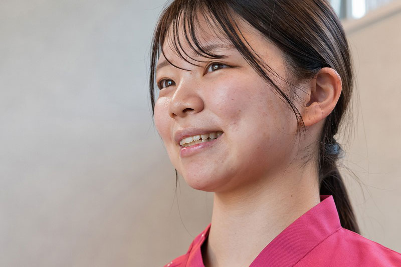 小川:私は学校で開催された見学会でなかむら歯科クリニックを知りました。歯医者といえば、子供の頃のマイナスイメージしかなかったのが正直なところです。でも、なかむら歯科クリニックに見学に来た時には、スタッフの笑顔があふれていたことにおどろきました。スタッフのみんなの優しさや学べる環境があるなと感じたことから、ここで楽しくやりがいのある仕事をしていきたいと思い、就職を決めました。